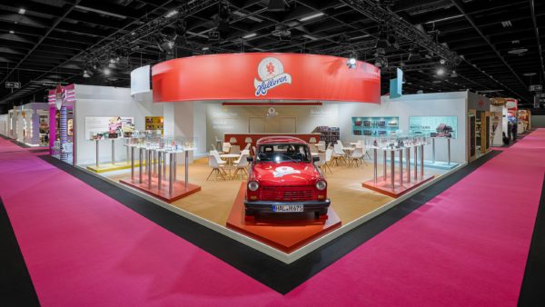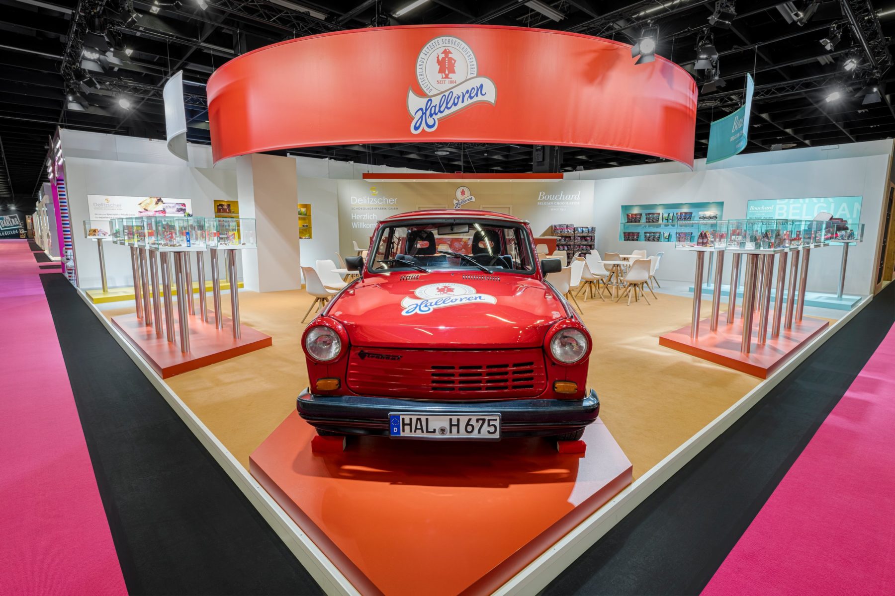 Halloren presented itself together with Delitzscher and Bouchard on a 144m² exhibition stand with a striking long-distance effect. The perfect, lively product presentation was achieved by standing display cases with glass hoods. The bar and catering area formed the center of the booth and was also a place for interesting discussions and tasty tastings. The “Halloren-Trabant 601 Kombi”, as an eye-catcher, was another highlight of the trade fair appearance.