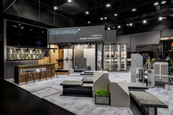 Kronospan entwickelt seine exklusiven Designs so, dass die Produkte der Kollektion für alle Projekte bestmöglich aufeinander abgestimmt sind. Genau diese Exklusivität und das Zusammenspiel als ganzheitliche Lösungen spiegelt sich auch im gesamten Messestand wider. Kontraste, Ergänzungen, unzählige Schattierungen und Strukturen, das Natürliche, das Urbane, das Coole, das Extravagante – die Kronodesign® Trends und City Vibes geben Spielraum Projekte mit weltweiter Freiheit zu entwickeln und lassen den Messestand als besonderes Highlight erstrahlen.